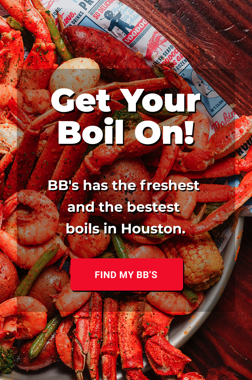 It all started with BB’s Tex-Orleans, where Texas-sized portions meet Louisiana craveables. From fried shrimp, crispy catfish, and golden wings to seafood boils loaded with shrimp, crab, crawfish, corn, and potatoes, every plate is made from scratch with the freshest and the bestest of Cajun flavors.