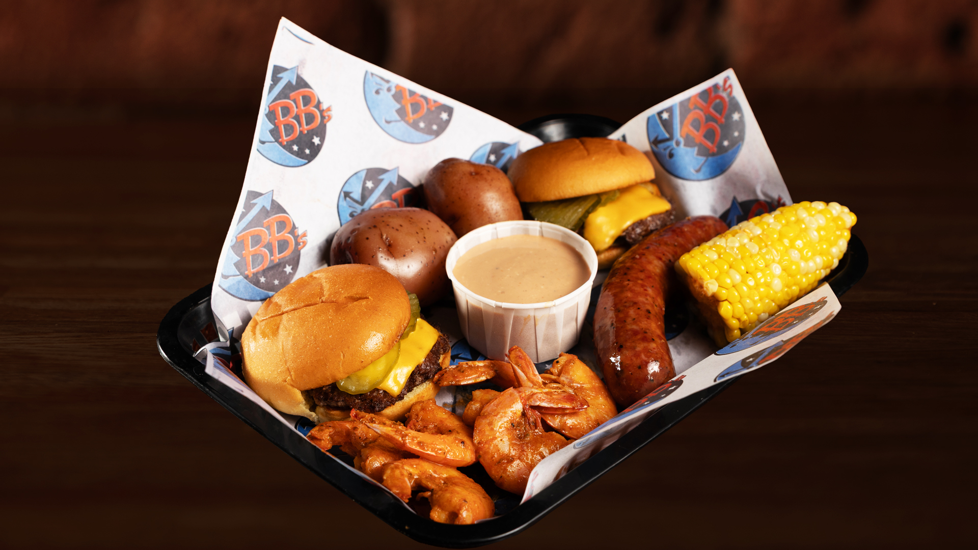 Pick any 3, served with waffle fries (cheeseburger slider, fried fish, 3 fried shrimp, garlic sausage, buffalo bites).