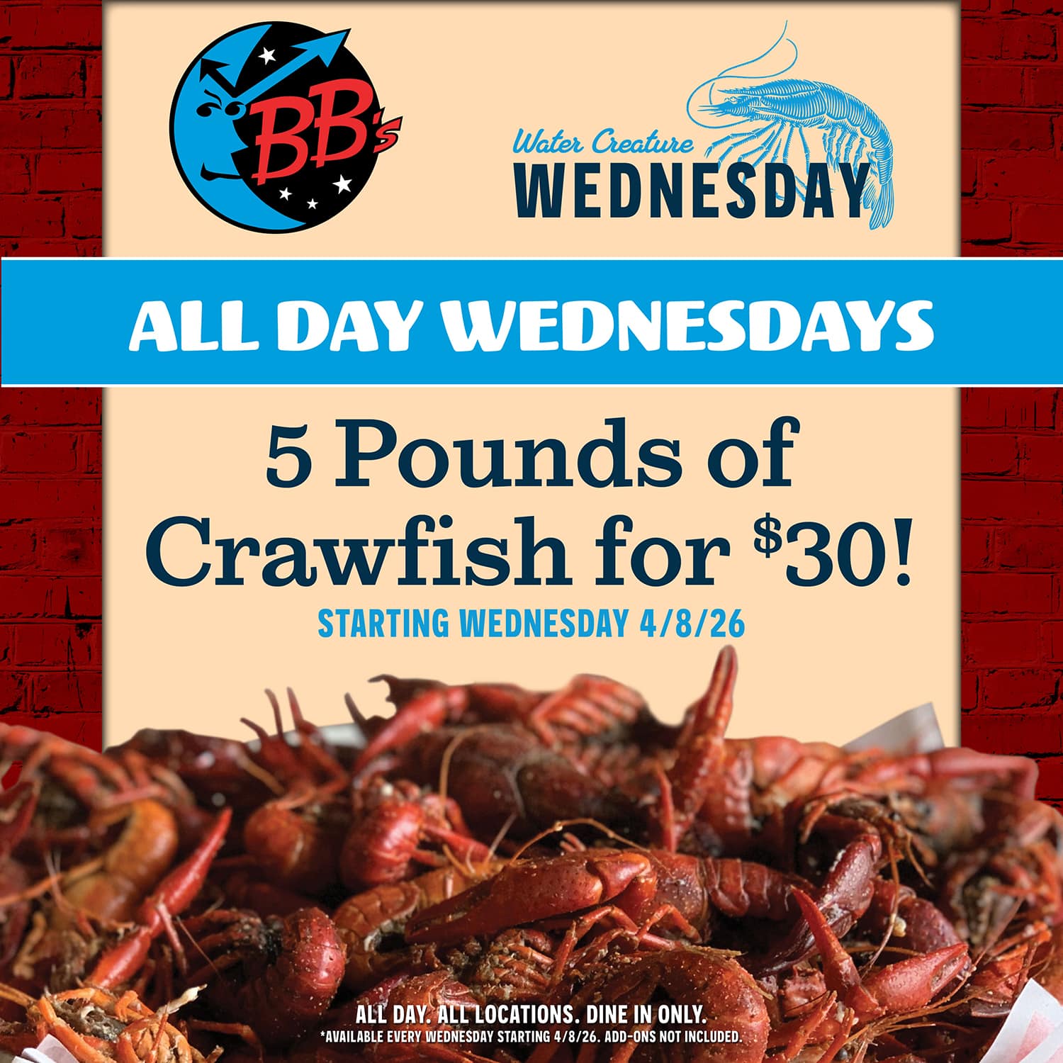 At BB’s Tex-Orleans, every bite is an experience. Customize your boil just the way you like it! Choose your flavor, pile on fresh seafood, add corn, potatoes, and sausage, and dip into our mouthwatering sauces for the ultimate crawfish feast.