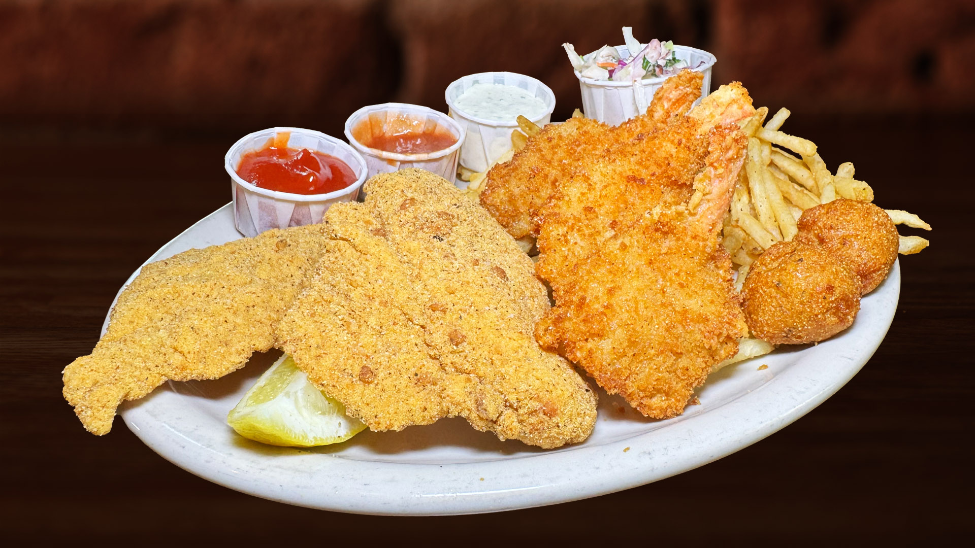 Served with hush puppies, coleslaw, and choice of fries or red beans and rice.